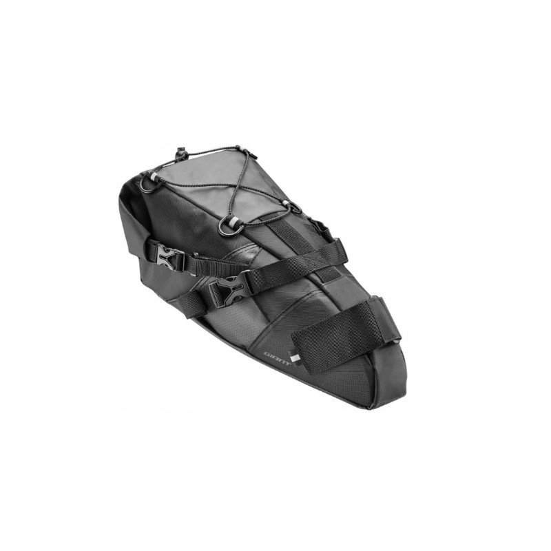 Torebka podsiodłowa Giant Scout w rozmiarze średnim to idealne rozwiązanie dla miłośników bikepackingu, którzy cenią sobie funkcjonalność i niezależność od bagażników. Dzięki pojemności 9 litrów, rolowanemu zamknięciu i elastycznej lince bungee bez problemu pomieści niezbędny ekwipunek na dłuższe wyprawy. Solidny 3-punktowy system mocowania oraz zintegrowane miejsce na lampkę zapewniają stabilność i bezpieczeństwo nawet na wymagających trasach.