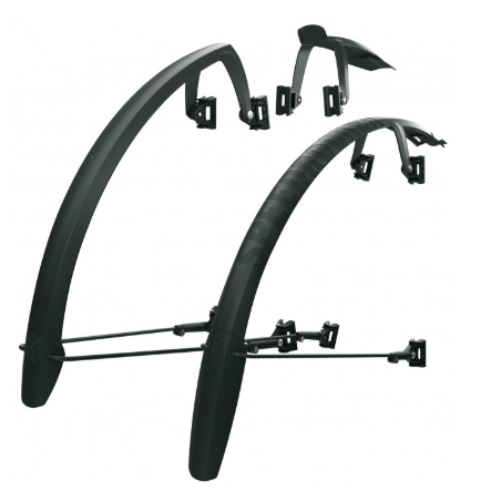 Nowoczesny system mocowania – Błotniki są wyposażone w stalowe uchwyty i gumowe zaczepy, które zapewniają solidne i stabilne mocowanie, a regulacja teleskopowa tylnego błotnika oraz nowy gumowy system mocujący umożliwiają dopasowanie do różnych profili ramy i widelca.