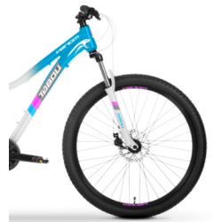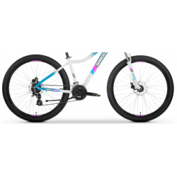 Rower charakteryzuje się lekką aluminiową ramą 26" z technologią hydroformowania, dostępną w kolorach niebieskim i białym, zapewniającą trwałość i wygodę. Wyposażony w solidny napęd SHIMANO ALTUS z 14 biegami oraz hamulce tarczowe TEKTRO DISC BRAKE M300, rower oferuje precyzyjne zmiany biegów i niezawodne hamowanie w każdych warunkach. Z przednim widelcem ZOOM 565D o skoku 60 mm i komponentami MTB, zapewnia komfortową jazdę zarówno w terenie, jak i na miejskich drogach.