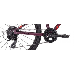 Rower KELLYS Aluminium alloy Junior 24" to lekka i wytrzymała konstrukcja stworzona specjalnie dla młodych rowerzystów, która łączy komfort z funkcjonalnością. Wyposażony w stalowy widelec SR SUNTOUR M3010 P z amortyzacją coil spring oraz precyzyjną 8-biegową przerzutkę SHIMANO Tourney TX800, gwarantuje płynną jazdę w zróżnicowanym terenie. Solidne hamulce TEKTRO V-brake i wygodne komponenty, takie jak kierownica Steel RiseBar i siodło KLS Junior, zapewniają bezpieczeństwo oraz komfort na każdym kilometrze.