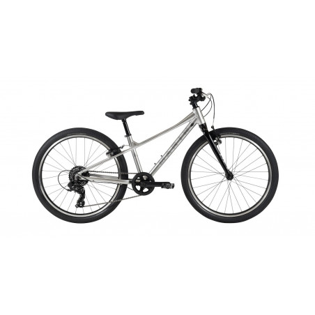Rower dziecięcy z 24-calowymi kołami oparty na lekkiej aluminiowej ramie sprawdzi się idealnie podczas codziennych przejażdżek i rekreacyjnej jazdy. Zestaw napędowy z 8-rzędową kasetą SunRace i manetką Microshift TS39 zapewnia płynną zmianę przełożeń, a hamulce typu V-brake gwarantują skuteczne hamowanie. Dzięki komponentom dostosowanym do dzieci, takim jak krótkie klamki hamulcowe i cienkie chwyty, rower zapewnia komfort oraz bezpieczeństwo młodszym użytkownikom.