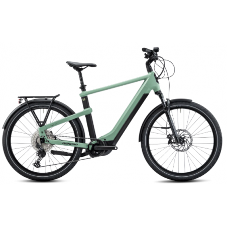Winora Yakun 12 to wyjątkowy rower elektryczny, który łączy mocny silnik Bosch Performance Line CX z precyzyjnym napędem Shimano Deore oraz wygodnym zawieszeniem RockShox, zapewniając komfortową jazdę nawet na trudnych nawierzchniach. Jego lekka i wytrzymała rama aluminiowa oraz niezawodny system hamulcowy Magura MT5 gwarantują bezpieczeństwo i trwałość, a duży akumulator Bosch PowerTube 750Wh zapewnia długi zasięg na każdej trasie. Nowoczesny design, ergonomiczna kierownica i praktyczny bagażnik sprawiają, że jest to idealny wybór dla osób szukających połączenia komfortu, funkcjonalności i stylu.
