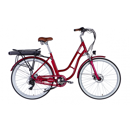 • Rower elektryczny 28 Dorozhnik CORAL DD 48V 12,5Ah 250W rubinowy 2025