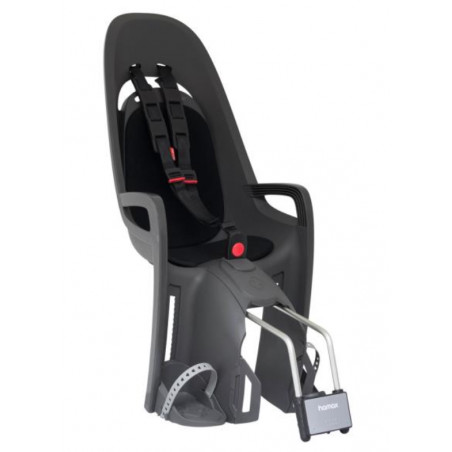 Idealny fotelik rowerowy dla małych pasażerów, łączący nowoczesny design z funkcjonalnością. Wykonany w stonowanym kolorze szarym z czarną, miękką wyściółką, zapewnia wygodę i styl. Dzięki uniwersalnemu systemowi mocowania można go zamontować zarówno na rowerze z bagażnikiem, jak i bez niego.