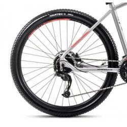 Romet Rambler R7.4 przyciąga wzrok swoim eleganckim srebrnym wykończeniem. Nowoczesne linie ramy i subtelne akcenty tworzą spójną estetykę, która wyróżnia się na tle innych rowerów. Srebrna powłoka nadaje rowerowi ponadczasowy wygląd, podkreślając jego dynamiczny i sportowy charakter.