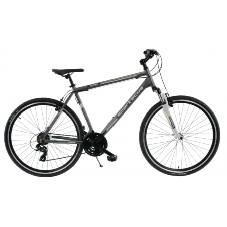 Rower Spartacus 28 Cross Spectrum AM TX SHS 3x7 KV VB M21' w matowym grafitowym kolorze łączy w sobie wytrzymałość aluminiowej ramy z amortyzowanym widelcem, który zapewnia komfort jazdy w trudnych warunkach terenowych. Jego napęd 3x7 oferuje szeroki zakres przełożeń, co umożliwia płynne przełączanie biegów zarówno na płaskich drogach, jak i w trakcie jazdy pod górę. Dzięki mechanicznym hamulcom tarczowym oraz solidnym kołom, rower gwarantuje niezawodność, stabilność i bezpieczeństwo w każdych warunkach pogodowych i na różnych nawierzchniach.