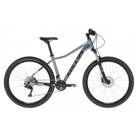 Rama: Lekka i sportowa rama KELLYS KLC 27.5 o geometrii dopasowanej do kobiecej sylwetki, gwarantująca wygodną pozycję i pełną kontrolę podczas jazdy.