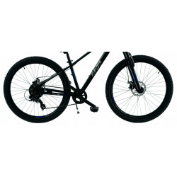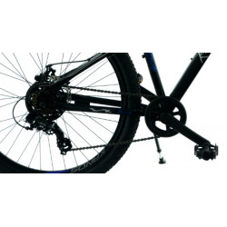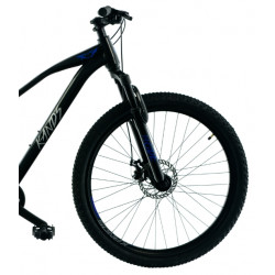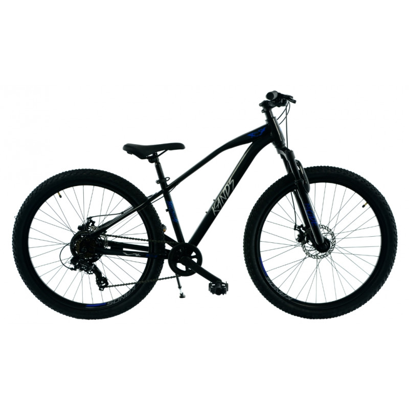 Rower KANDS łączy wytrzymałą stalową ramę w czarno-niebieskim kolorze połysku z amortyzatorem o skoku 70 mm, co zapewnia komfortową jazdę na nierównych nawierzchniach. Dzięki 21-biegowemu napędowi Shimano, precyzyjnym przerzutkom i tarczowym hamulcom mechanicznym, rower oferuje niezawodność oraz płynność w trudnym terenie. Koła 27,5" z dwukomorowymi aluminiowymi obręczami oraz opony IMPAC zapewniają doskonałą przyczepność, a cała konstrukcja roweru o wadze 17,5 kg zapewnia stabilność i komfort jazdy.