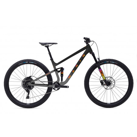 Ten rower to solidna maszyna oparta na ramie z aluminium Series 3 6061, oferująca 150 mm skoku zawieszenia i geometrię przygotowaną na ostre zjazdy i techniczne podjazdy. Amortyzator RockShox Lyrik Select+ i damper Super Deluxe Select+ gwarantują świetną kontrolę trakcji w trudnym terenie, a napęd SRAM GX Eagle AXS T-Type zapewnia płynność zmiany biegów nawet pod obciążeniem. Całość dopełniają czterotłoczkowe hamulce SRAM DB8 Stealth, koła na obręczach Marin 29 mm z oponami Maxxis Assegai 2.5", gotowe na jazdę bezdętkową.