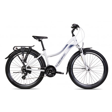 Ten damski rower z lekką ramą aluminiową ALU 6061-T6 w rozmiarze 15" został zaprojektowany z myślą o komforcie i elegancji podczas codziennej jazdy. Napęd SHIMANO z 16 biegami zapewnia płynne i niezawodne przełożenia, a amortyzowany widelec SR SUNTOUR M3010-A skutecznie tłumi nierówności terenu. Całość dopełniają wygodne komponenty, takie jak siodło SELLE ROYAL ESSENZA z żelem ROYAL GEL, regulowany wspornik kierownicy i praktyczny bagażnik STANDWELL przystosowany do sakw.