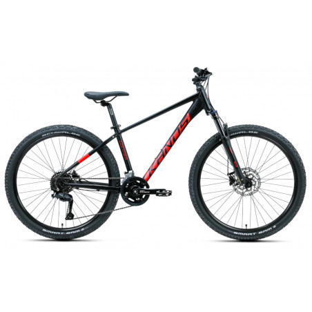 Rower KANDS z ramą HYDROFORMING AL6061 to połączenie lekkiej konstrukcji i nowoczesnej technologii, idealny do aktywnej jazdy terenowej. Wyposażony w amortyzator SR SUNTOUR XCT30 o skoku 100 mm i hydrauliczne hamulce tarczowe Shimano AMT200 zapewnia płynność prowadzenia i skuteczne hamowanie w każdych warunkach. Koła 27,5" z oponami Schwalbe K-Guard i napęd Shimano 2x9 umożliwiają dynamiczną jazdę, gwarantując komfort i kontrolę na trasach off-road.