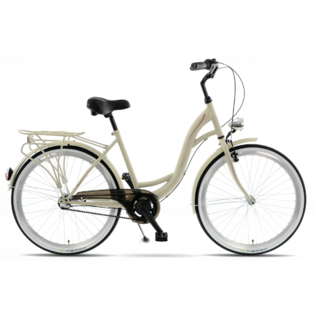 Rower KANDS to stylowy pojazd z solidną stalową ramą i sztywnym widelcem, który zapewnia trwałość i komfort jazdy po miejskich nawierzchniach. Wyposażony w niezawodny napęd SHIMANO NEXUS z 3 biegami oraz komfortowe 26-calowe koła, idealnie sprawdza się w codziennych przejażdżkach. Dodatkowo, rower oferuje funkcjonalne akcesoria, takie jak oświetlenie LED, bagażnik i błotniki, gwarantując pełną wygodę i bezpieczeństwo użytkowania.