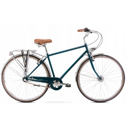Romet Vintage Classic M w turkusowym wykończeniu to stylowy rower miejski dla mężczyzn o wzroście 155–170 cm, łączący klasyczny design z nowoczesną funkcjonalnością. Stalowa rama i widelec gwarantują trwałość, a 6-biegowy napęd Shimano Tourney zapewnia płynną jazdę po miejskich trasach. Wyposażony w oświetlenie LED, aluminiowy bagażnik i błotniki, świetnie sprawdzi się w codziennych dojazdach i weekendowych przejażdżkach.