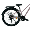 Ten damski rower miejski z aluminiową ramą wykonaną w technologii hydroformingu wyróżnia się nowoczesnym designem i solidną konstrukcją. Zastosowanie amortyzatora SR Suntour XCE, hydraulicznych hamulców Shimano oraz precyzyjnego napędu 3x7 Shimano zapewnia wygodę i bezpieczeństwo w każdych warunkach. Dzięki dużym kołom 28", ergonomicznym komponentom i pełnemu wyposażeniu, rower doskonale sprawdzi się zarówno w mieście, jak i podczas dłuższych wycieczek.
