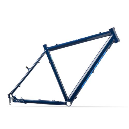 Rama trekkingowa wykonana z wytrzymałego stopu aluminium 6061-T6 to doskonała baza do długich podróży rowerowych, zapewniając sztywność i niezawodność w trudnym terenie. Dzięki przelotkom do montażu bagażnika, mocowaniu hamulca tarczowego wewnątrz tylnego trójkąta oraz standardowi K-Mount do stopki, jest w pełni przystosowana do transportu bagażu i innych akcesoriów. Z eleganckim granatowym wykończeniem, rama łączy funkcjonalność z estetyką, a jej lekka konstrukcja (1,88 kg) gwarantuje komfort na każdej wyprawie.
