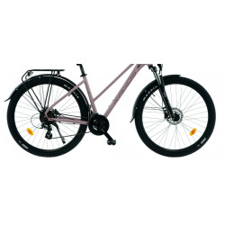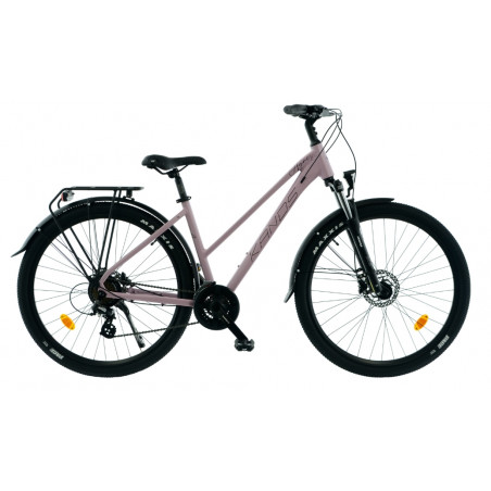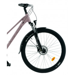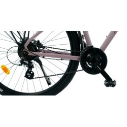 Ten rower to połączenie stylu i funkcjonalności – lekka aluminiowa rama KANDS w modnym różowym macie wyróżnia się na tle miejskiego krajobrazu. Dzięki 21 przełożeniom Shimano oraz amortyzatorowi SR SUNTOUR XCE z 100 mm skoku, zapewnia komfortową jazdę zarówno po asfalcie, jak i w lekkim terenie. Hydrauliczne hamulce tarczowe Shimano gwarantują pełną kontrolę i bezpieczeństwo w każdej sytuacji.