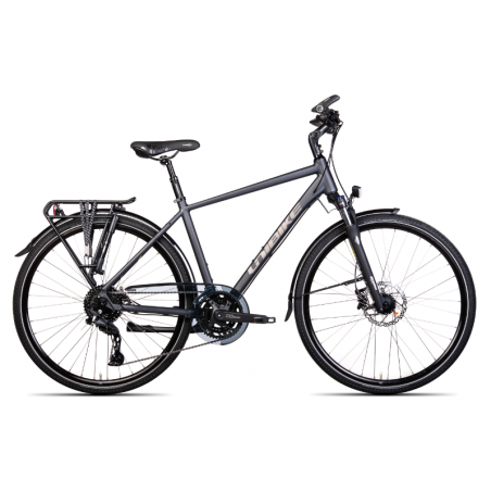 Rower ten łączy elegancję i funkcjonalność dzięki lekkiej aluminiowej ramie 700C (ALU 6061-T6), zaprojektowanej z myślą o kobietach, oraz amortyzowanemu widełkowi SR Suntour NEX, który zapewnia komfort jazdy na nierównych nawierzchniach. 20-biegowy system Shimano CUES, z szerokim zakresem przełożeń (11-39T), gwarantuje płynne przełączanie biegów, a tarczowe hamulce Shimano MT410 zapewniają skuteczne hamowanie w każdych warunkach. Wyposażony w wysokiej jakości komponenty, takie jak opony Schwalbe Marathon Almotion oraz regulowaną podpórkę, rower jest idealnym wyborem do codziennych dojazdów, długich wypraw i rekreacyjnych przejażdżek.