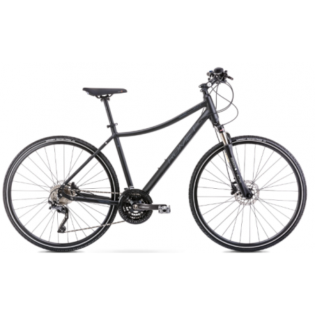 Rower ROMET z aluminiową, 28-calową ramą w matowej czerni łączy lekkość i trwałość, idealną do miejskiej i terenowej jazdy. Wyposażony jest w amortyzowany widelec SF-20 NEX-DS-HLO oraz precyzyjny napęd Shimano Deore z 30 biegami, zapewniający płynną i komfortową jazdę w różnych warunkach. Hydrauliczne hamulce Shimano BL-MT410 z tarczami 160 mm gwarantują skuteczne hamowanie, a komfortowe siodło Selle Royal i szeroka aluminiowa kierownica dają pełną kontrolę i wygodę podczas każdej przejażdżki.